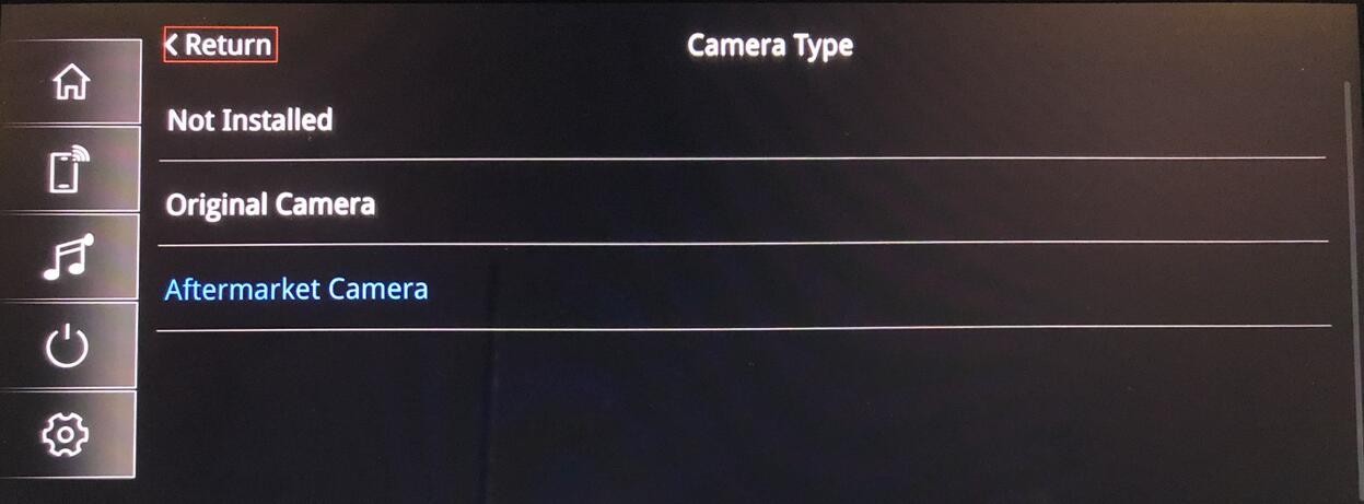 Aftermarket Camera:Select this option when installing a reversing camera.