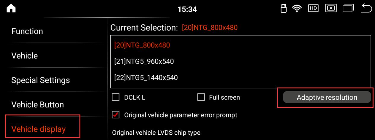 2.For vehicles equipped with the NTG 3.5 system, if selecting “Adaptive resolution” does not work,please manually select option 20 or 29.