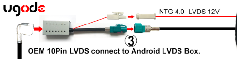 The stock LVDS cable for the Mercedes NTG4.0 system is a 10 PIN that is unplugged from the stock screen end to connect to the LVDS converter box that we provide, and then connects through the LVDS converter box to the Android screen’s LVDS (4 pin).