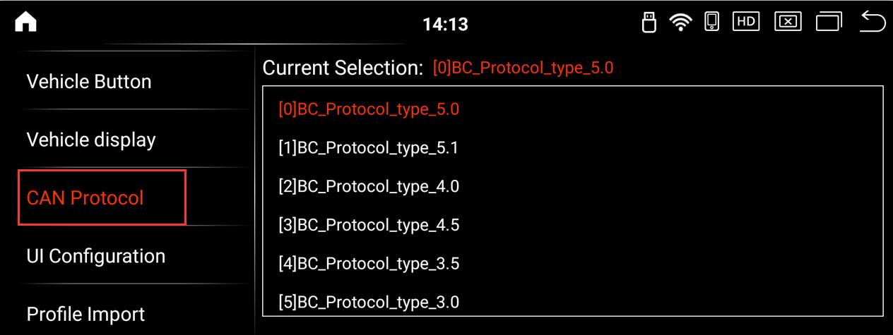 2.Check if the CAN protocol selection in Android factory mode is correct.