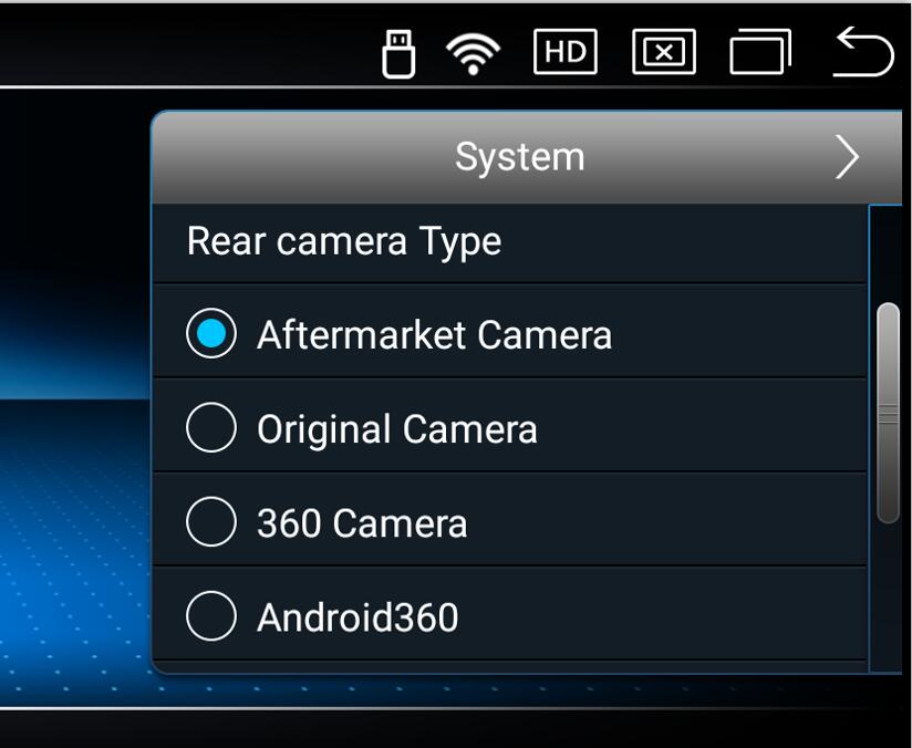 If your car comes with a reversing camera, please select: Original Camera.