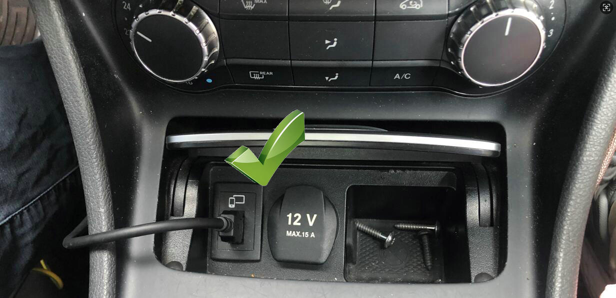 Some customers who purchased the UGODE Mercedes-Benz NTG5 monitor with wireless CarPlay and Android Auto functionality discovered during installation that the original vehicle USB port did not recognize the USB-AUX audio adapter. Please refer to the following solution to resolve this issue.