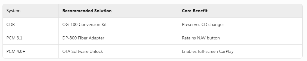 PCM 3.1: Requires MOST fiber optic decoder for CarPlay