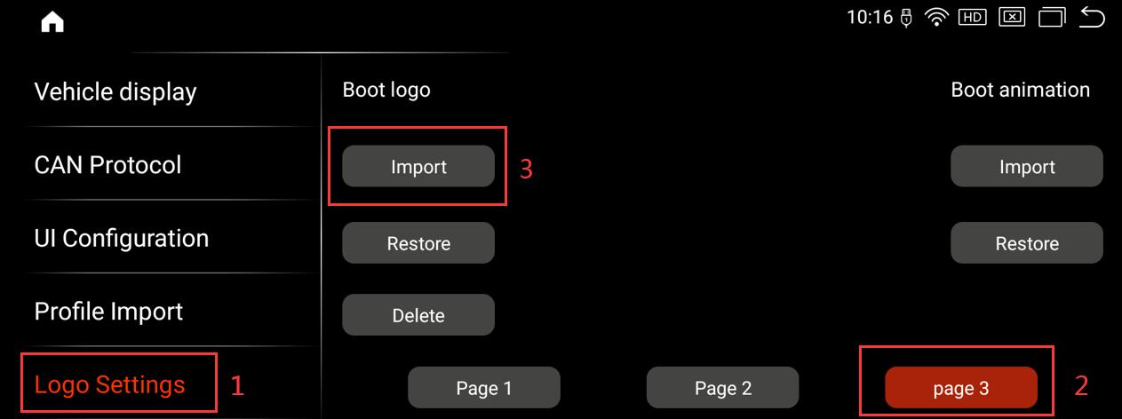 2.Enter Android Factory Mode Logo Settings, Page 3 to import it.
