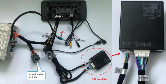 (1) The model of the Ugode DSP amplifier box is DSP100, which can be used for installation in NTG5.0/5.1/5.2 with the same set of cables. It can also be installed in 5.5/6.0 cars with different cables.